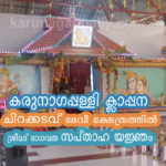 കരുനാഗപ്പള്ളി : ക്ലാപ്പന ചിറക്കടവ് ദേവീ ക്ഷേത്രത്തിൽ 12 മത് ശ്രീമദ് ഭാഗവത സപ്താഹ യജ്ഞം നടന്നു കൊണ്ടിരിക്കുന്നു. ശക്തി സ്വരൂപിണിയും അഭീഷ്ടവരപ്രസാദിനിയും നാടിന്റെ ഐശ്വര്യ ദേവതയുമായ…