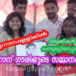 കരുനാഗപ്പള്ളി : വാര്ത്താമാധ്യമങ്ങളിലേയും സോഷ്യല്മീഡിയയിലേയും താരമായ ഹനാൻ കരുനാഗപ്പള്ളിയിൽ എത്തിയപ്പോൾ കരുനാഗപ്പള്ളിയിലെ കൊച്ചു കലാകാരി ഗൗരി സുനിൽ ഒരു ചിത്രം വരച്ചു സമ്മാനിച്ചു. പഠനത്തിനിടെ ഉപജീവനത്തിനായി മത്സ്യ…