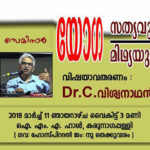 കരുനാഗപ്പള്ളി: യോഗ സത്യവും മിഥ്യയും എന്ന വിഷയത്തെ ആസ്പദമാക്കി ഡോ.സി. വിശ്വനാഥൻ അവർകൾ അവതരിപ്പിക്കുന്ന സെമിനാർ മാർച്ച് 11 ഞായാറാഴ്ച വൈകിട്ട് 3 മണിക്ക് കരുനാഗപ്പള്ളി ഗവ.…